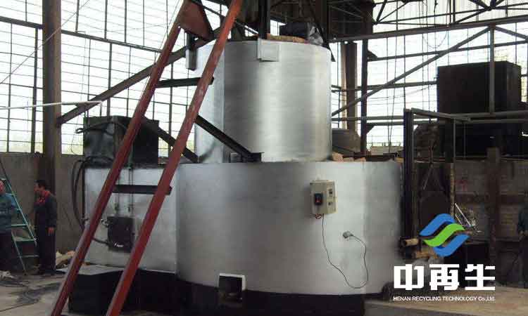 (2)廢鋁的液化分離技術,廢鋁的液化分離是今后回收金屬鋁的發展方向,廢鋁雜料通過廢鋁破碎機的預處理與重新熔鑄相結合,既縮短了工藝流程,又可以大限度地避免空氣污染,而且使得凈金屬的回收率 大大提高。廢鋁液化分離裝置的工作原理如圖1所 示,裝置中有一個允許氣體微粒通過的過濾器,在液化層,鋁沉淀于底部,廢鋁中附著的油漆等有機 物在450℃以上分解成氣體、焦油和固體炭,再通過分離器內部的氧化裝置燃燒。廢料通過旋轉鼓攪拌,與倉中的溶解液混合,砂石等雜質分離到砂 石分離區,被廢料帶出的溶解液通過回收螺旋槳返回液化倉。